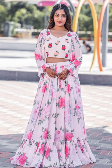 Party Wear Crop Top Lehenga With Long Jacket 2022