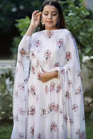 New Arrival Party Wear Georgette Anarkali Suit For Wedding With Full Digital Print And Dupatta Design 2022