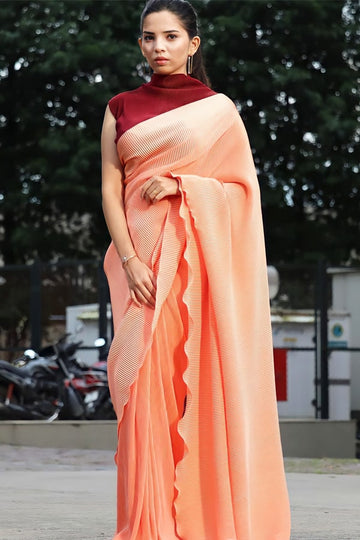 Buy Party Wear Georgette Saree With Peach Color In 2022