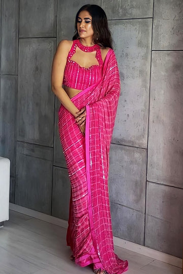 Color: Pink Sequence Saree Designs For WomenMore Categories: Embroidery Saree For Women | South Indian Wedding Saree