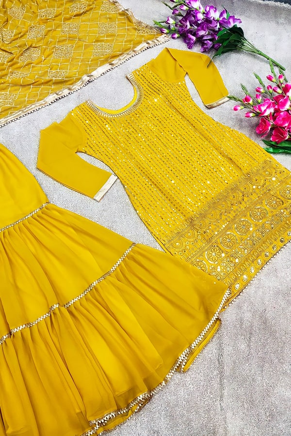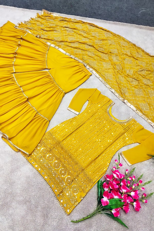Related: Party Wear Sharara Suit Design 2022 For Girls | Wedding Guest Special Dress | Sequence Work Dress For Women | Embroidery Sequence Work Design | Modern Punjabi Sharara Suits | Embroidery Sequence Sharara Suit With Palazzo | Short Kurti With Sharara Palazzo | Heavy Embroidery Sharara Suit | suit design for girls | haldi dress for girlsExchange & Replacement Policy