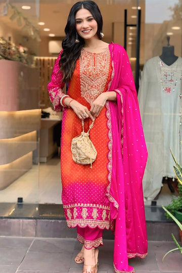 Pink Orange Full Sleeve Long Dress For Women