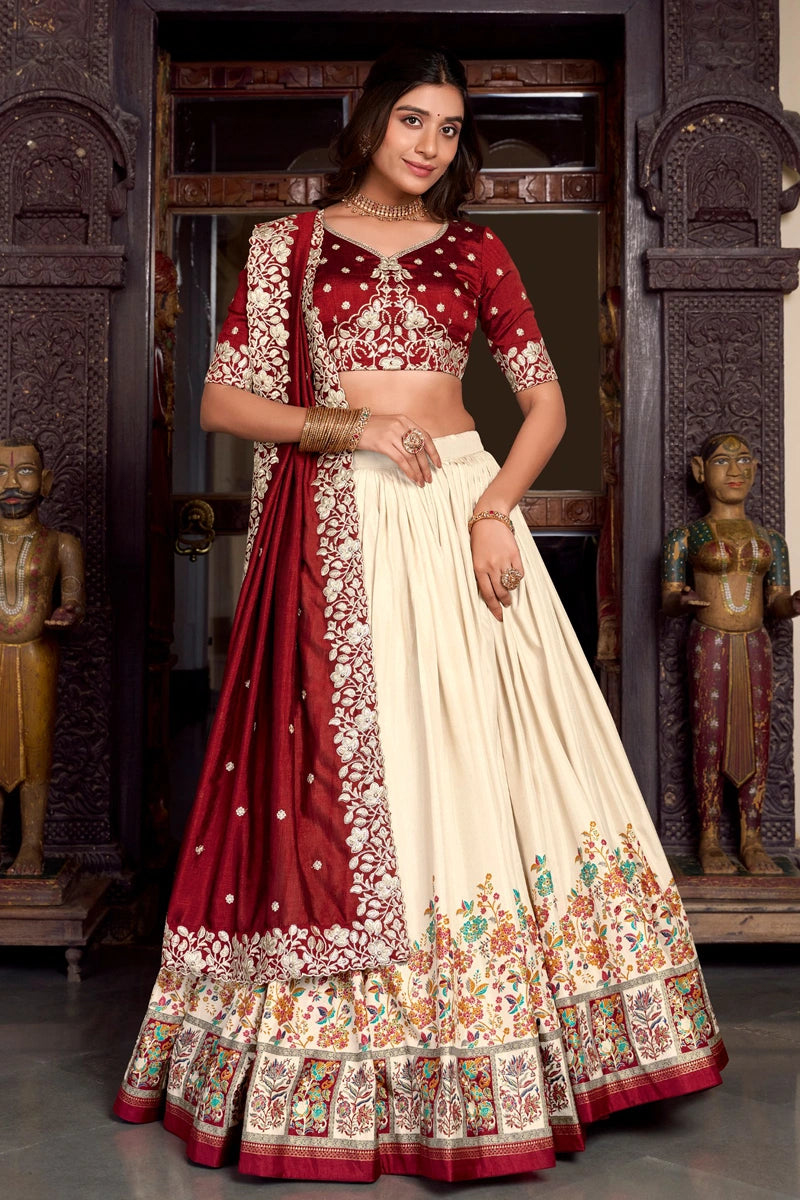 New Printed Work Designer Off White Lehenga For Wedding From Anaya Designer Studio