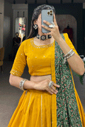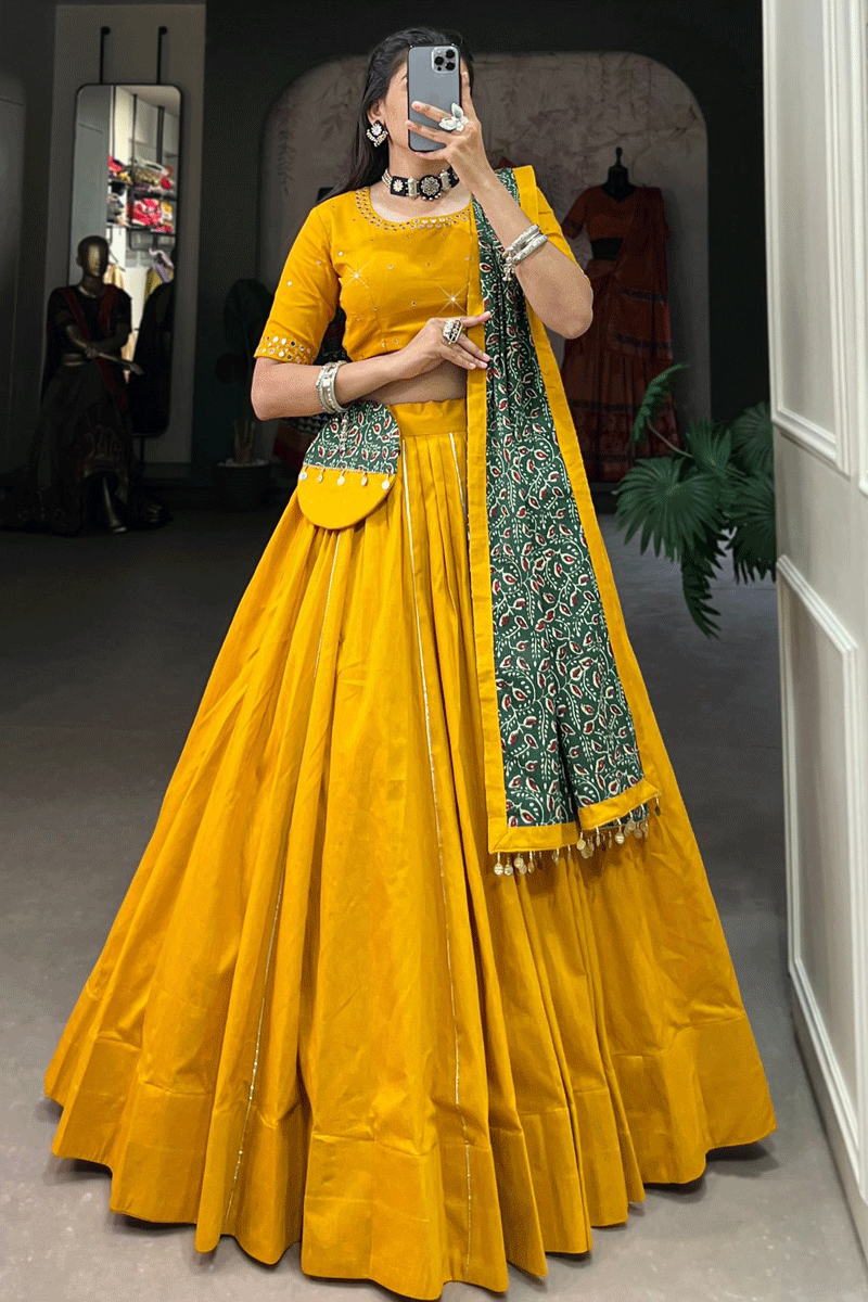 Latest Pure Cotton Yellow Lehenga Choli For Haldi Ceremony