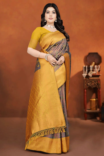 New Pure Zari Silk Yellow Saree For Haldi Rasam From Anaya Designer Studio