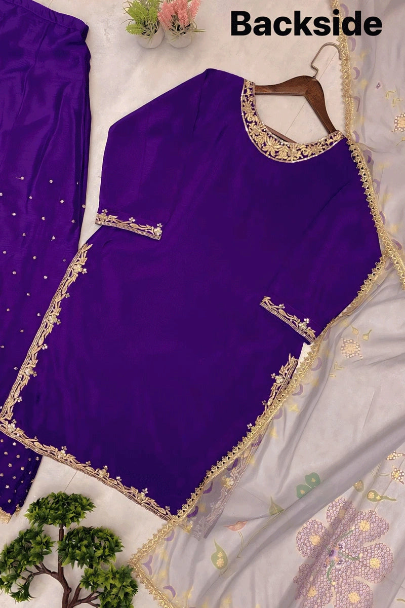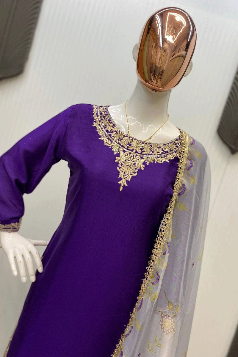 Purple Color Sequence Embroidery Work Suit For Diwali