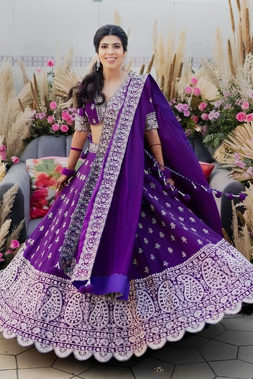 Purple Designer Crop Top Lehenga Pics For Wedding - Anaya Designer Studio