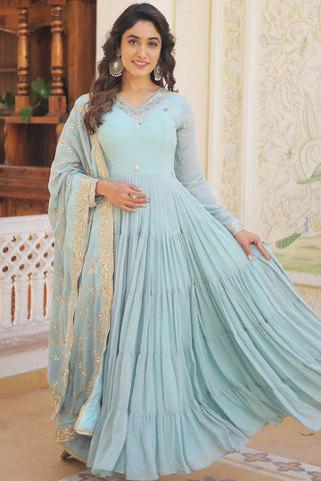 New Arrival Sky Blue Color Full Sleeve Ruffle Gown With Sequin Embroidered Work For Wedding Function By Anaya Designer Studio 2024