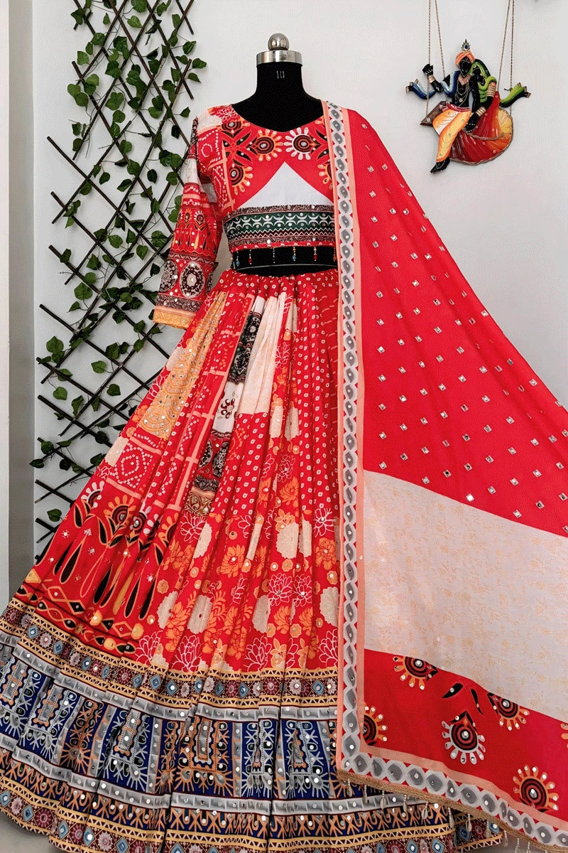 Real Mirror Work Digital print Chnaiya Choli For Navratri