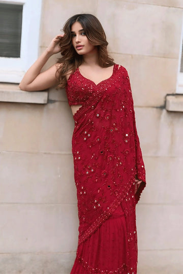 New Designer Real Mirror Work Red Saree For Reception Party From Anaya Designer Studio
