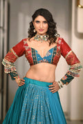 Real Mirror Work Sky Blue Chaniya Choli For Navratri