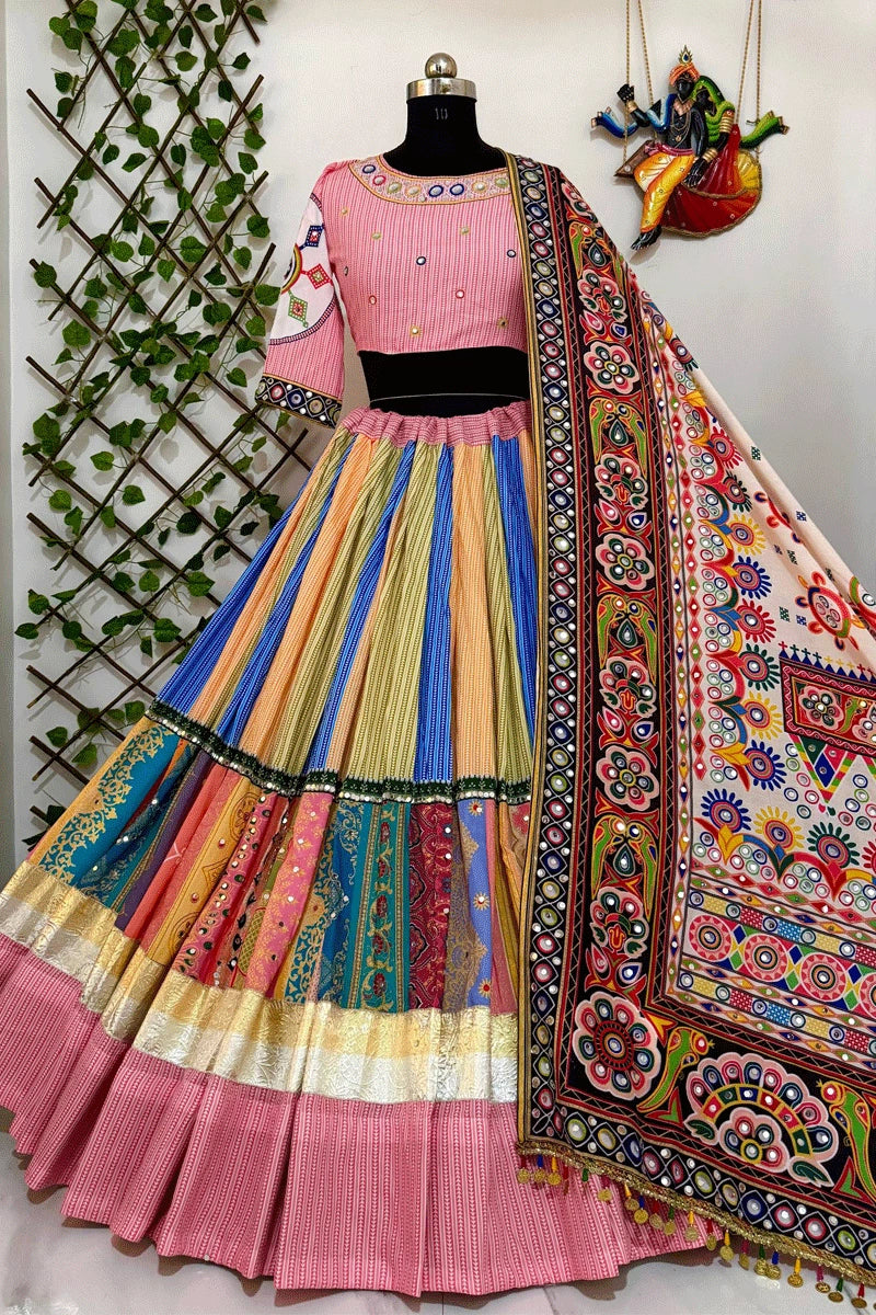 Real Mirror Work With Digital Print Chaniya Choli For Garba Night