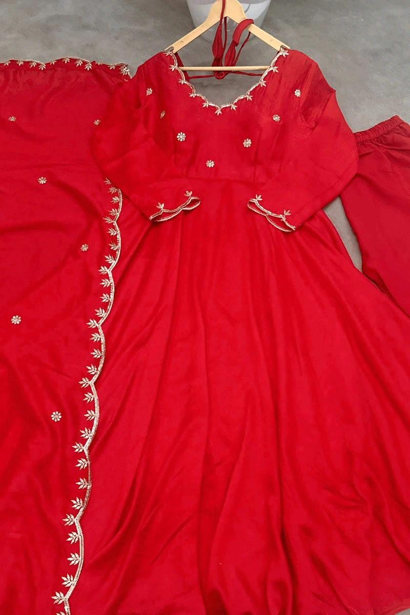 Red Color Long Sleeves Dress For Karwa Chauth Festival From Anaya Designer Studio