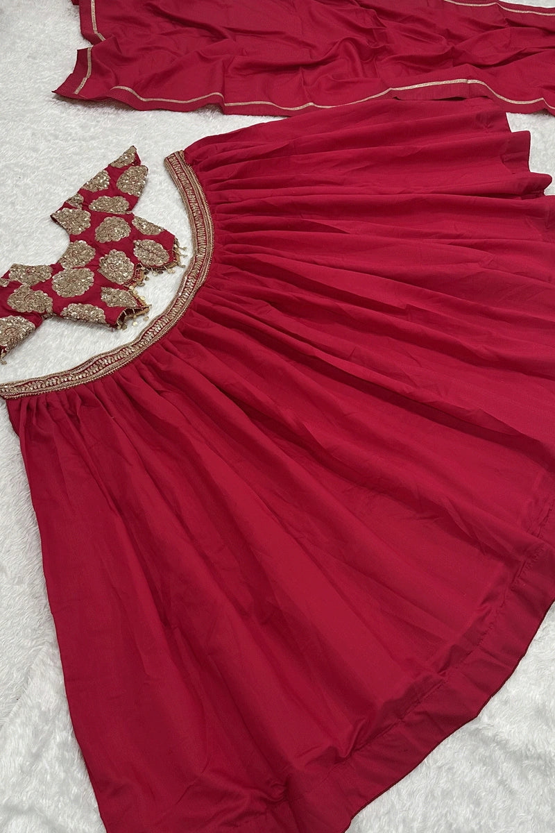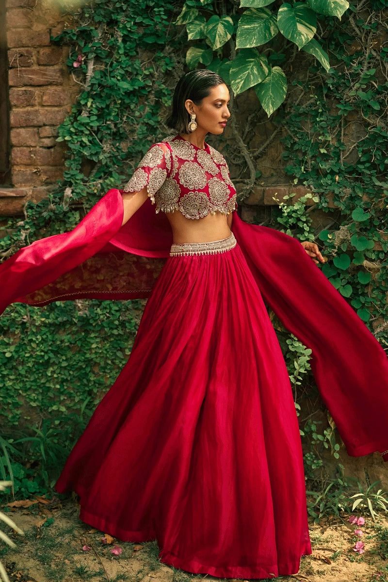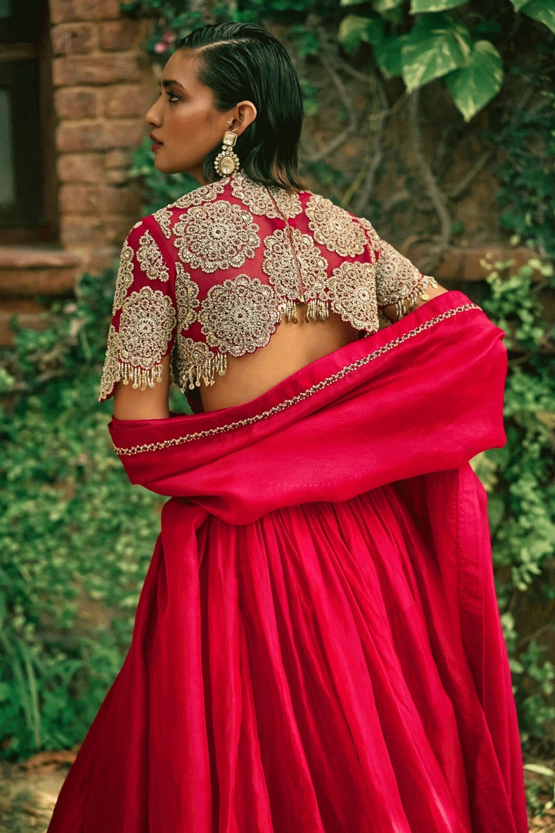 New Designer Red Roman Silk Lehenega For Wedding Sangeet From Anaya Designer Studio