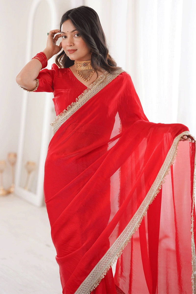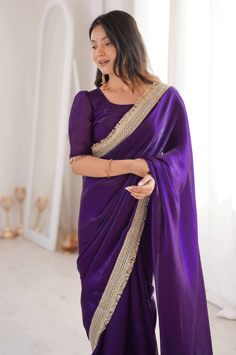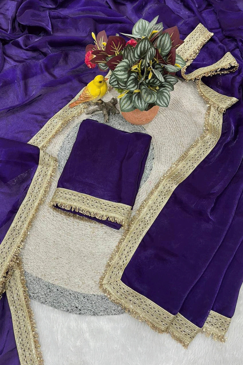 Design: Solid plain saree with fancy sequins lace border