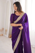 Satin Silk Plain Saree For Reception Party
