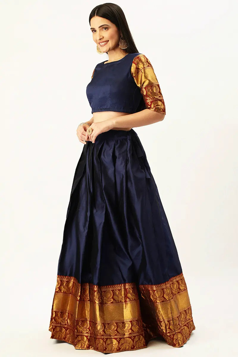 Semi Stitched Trendy Navy Blue Half Saree Design