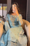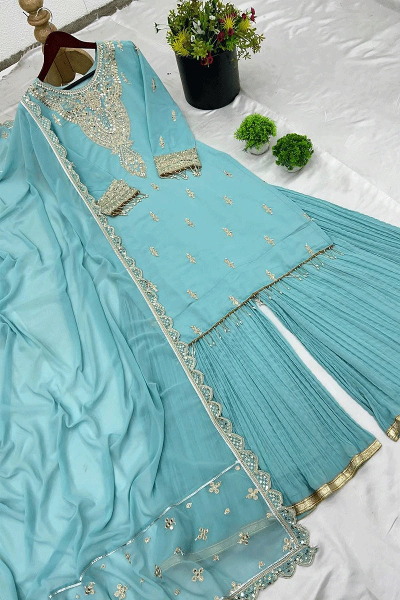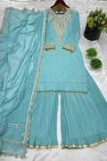 Sky Blue Color Sharara Suit Pair With Dupatta For Wedding