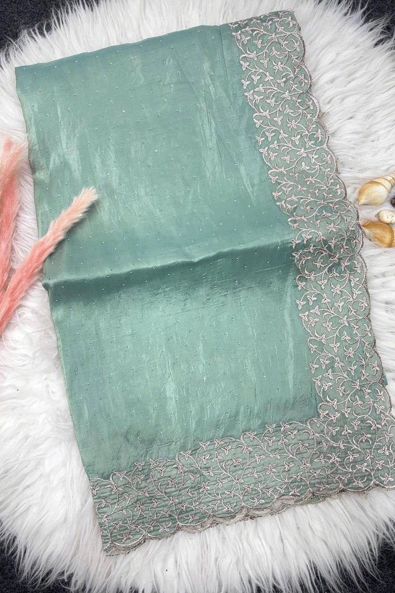 Work: Embroidery Work with Diamond Detailing
