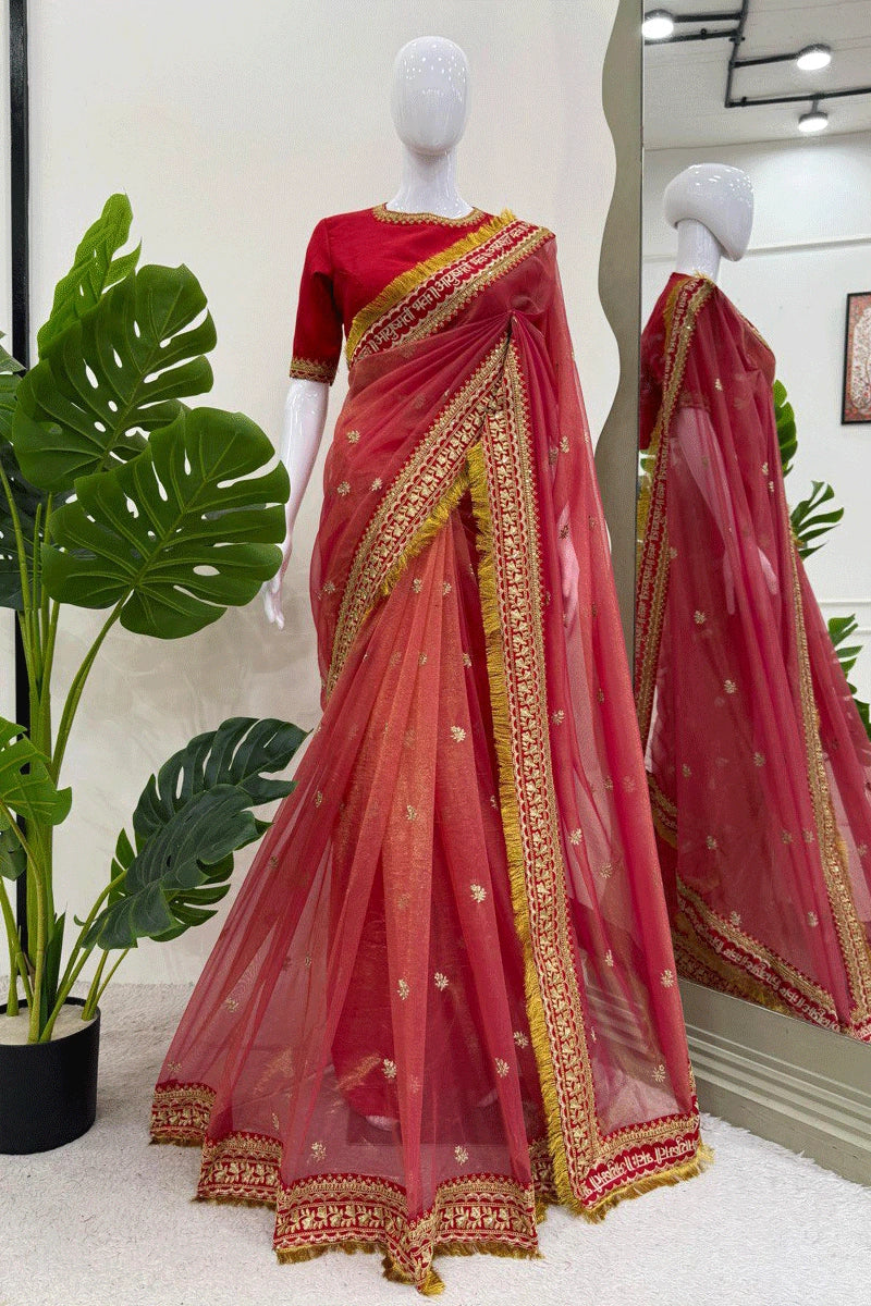 Soft Net Red Saree For Wedding Party