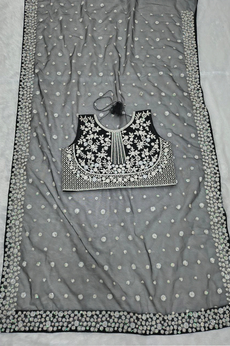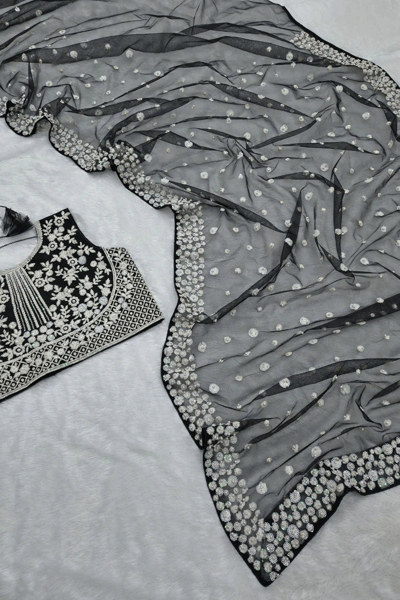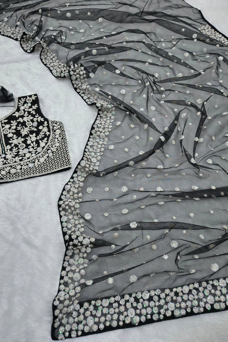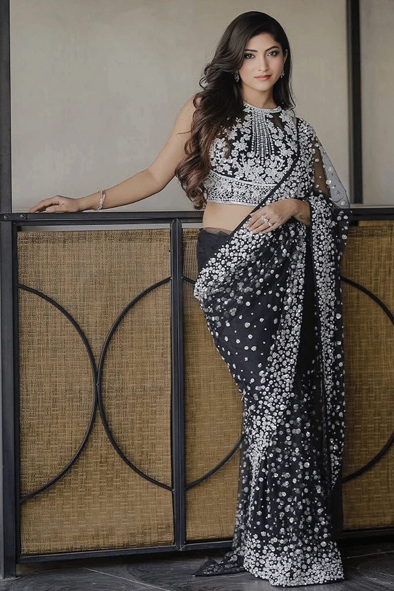 New Designer Soft Net Sequence Work Black Saree For Reception Party From Anaya Designer Studio