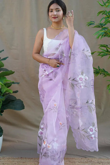 Celebrate the union of tradition and elegance with our Wedding Guest Special Soft Organza Silk Saree featuring exquisite digital prints. Crafted with precision and adorned with timeless designs, this saree is a perfect choice for those seeking grace with a contemporary touch. The soft organza silk drapes gracefully, enhancing the beauty of every movement.