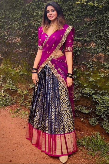 New Arrival Pattu Lehenga Half Saree For Girls Special For Wedding Function