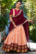Product Description Of South Indian Style Peach Half Saree: