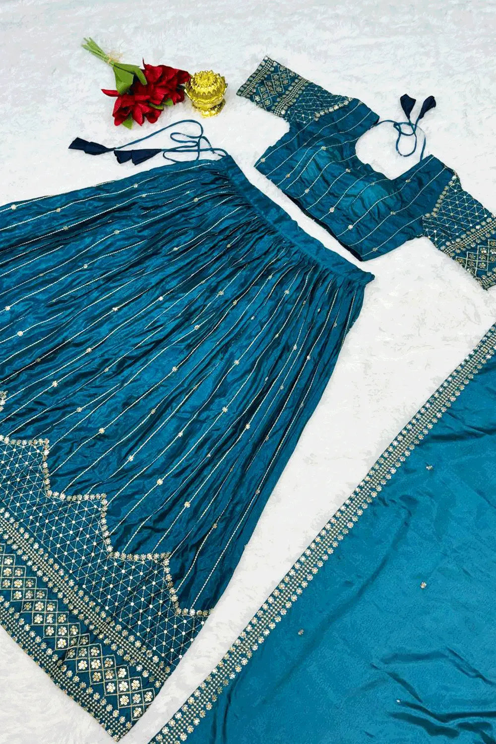 New Arrival Chinnon Silk Embroidery Zari & Sequence Work Stitched Half Saree Collection 2024