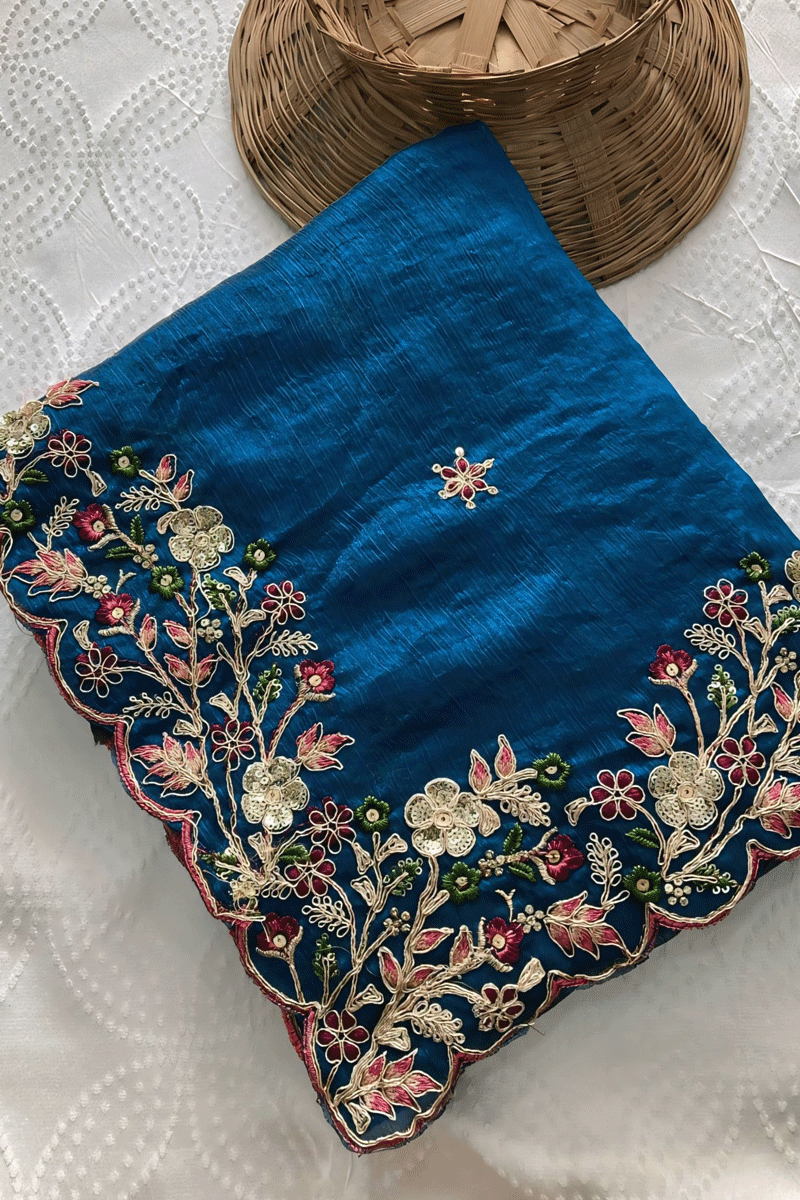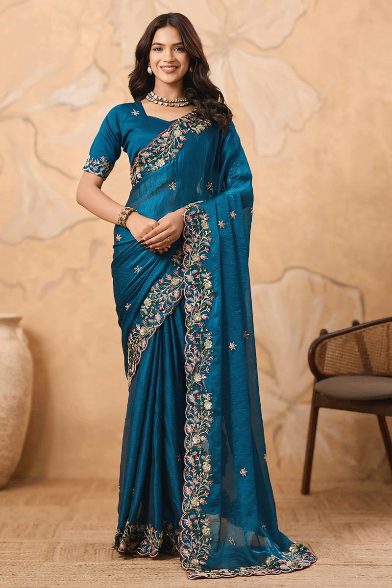 Teal Colour Designer Saree For Farewell