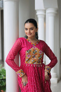 Traditional Bandhani Print Long Sleeve Gown For Navratri
