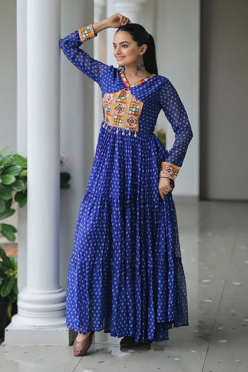 New Traditional Bandhani Print Long Sleeve Gown For Navratri From Anaya Designer Studio