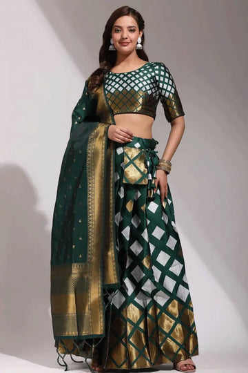 Traditional Green Colour Half Saree With Golden Lace Border Dupatta