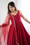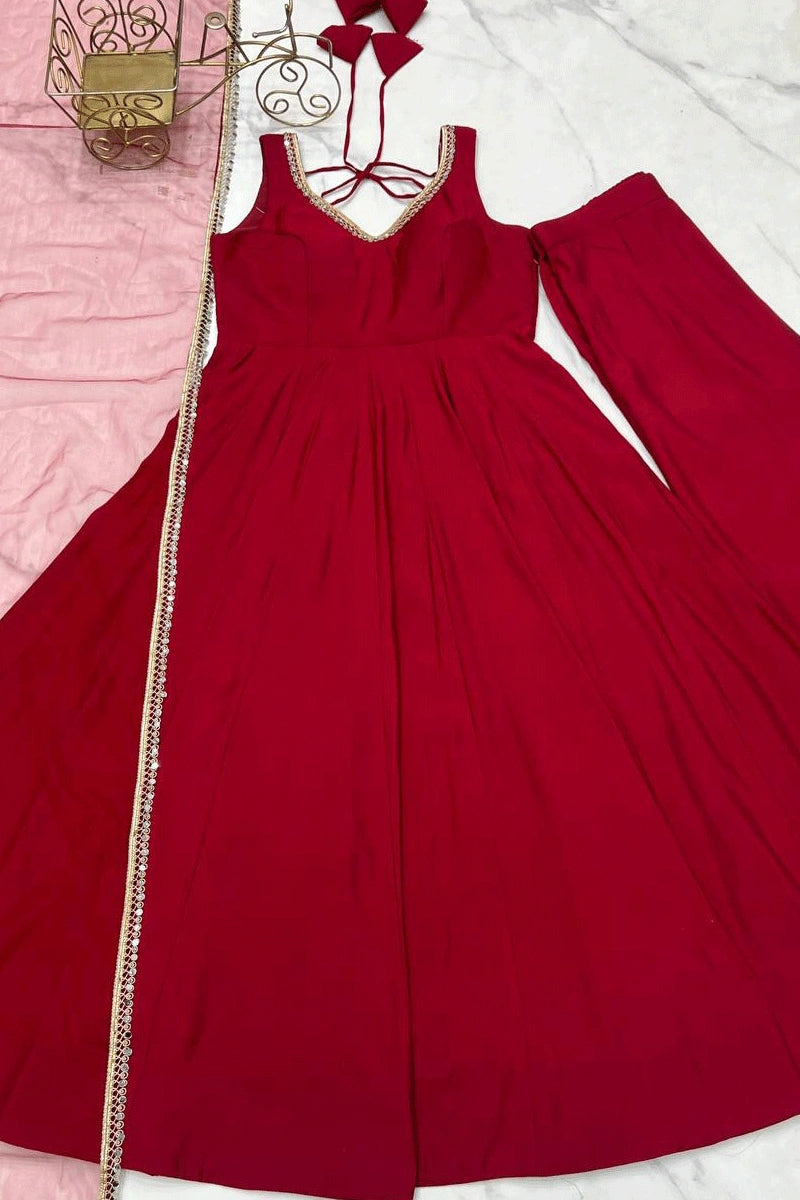 Traditional Heavy Flair Red Color Anarkali Suit For Gen Z Girls