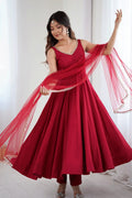 Traditional Heavy Flair Red Color Anarkali Suit For Gen Z Girls From Anaya Designer Studio