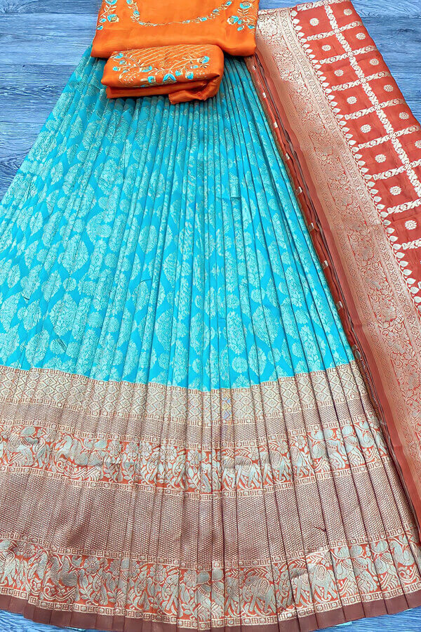 In the upcoming festival seasons, we are launching an new Traditional Lehenga Style Saree For Girls Which is Made With Kanjiveram Silk Fabric With Full Zari Work Design.
