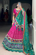 Work: Leheriya with Patola Print Border, Real Mirror Gamthi Work & Lace Touch-Up