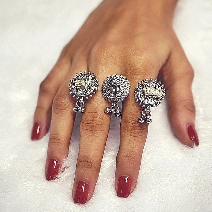 Traditional Oxidised Golden Cow Design Ring From Anaya Designer Studio