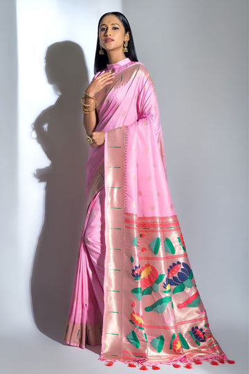 New Arrival Baby Pink Paithani Saree Specilly For Wedding Season