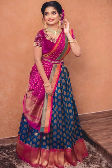 New Arrival Traditional Pattu Half Saree Images For Girls That Made With Kanjiveram Silk Pure Zari Half Saree With Blouse Along with Dupatta!