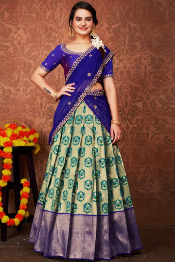 New Arrival Trendy Blue Color New Model Pattu Half Saree Best Collection For Girls Buy Online 2024