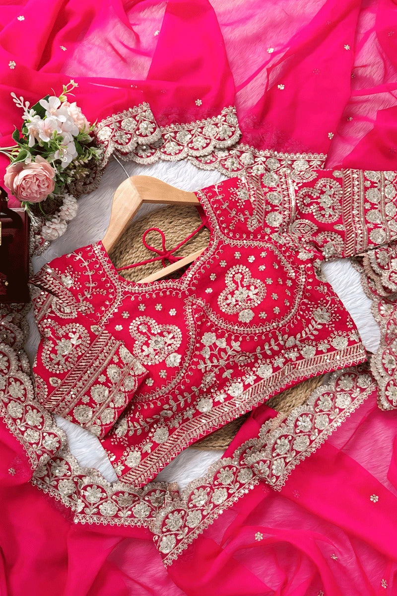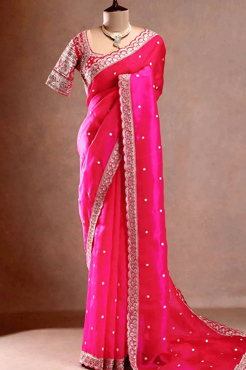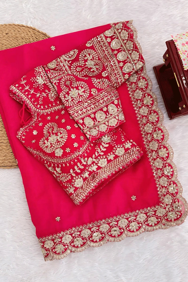Traditional Pink Color Sequnce Work Saree For Karwa Chauth