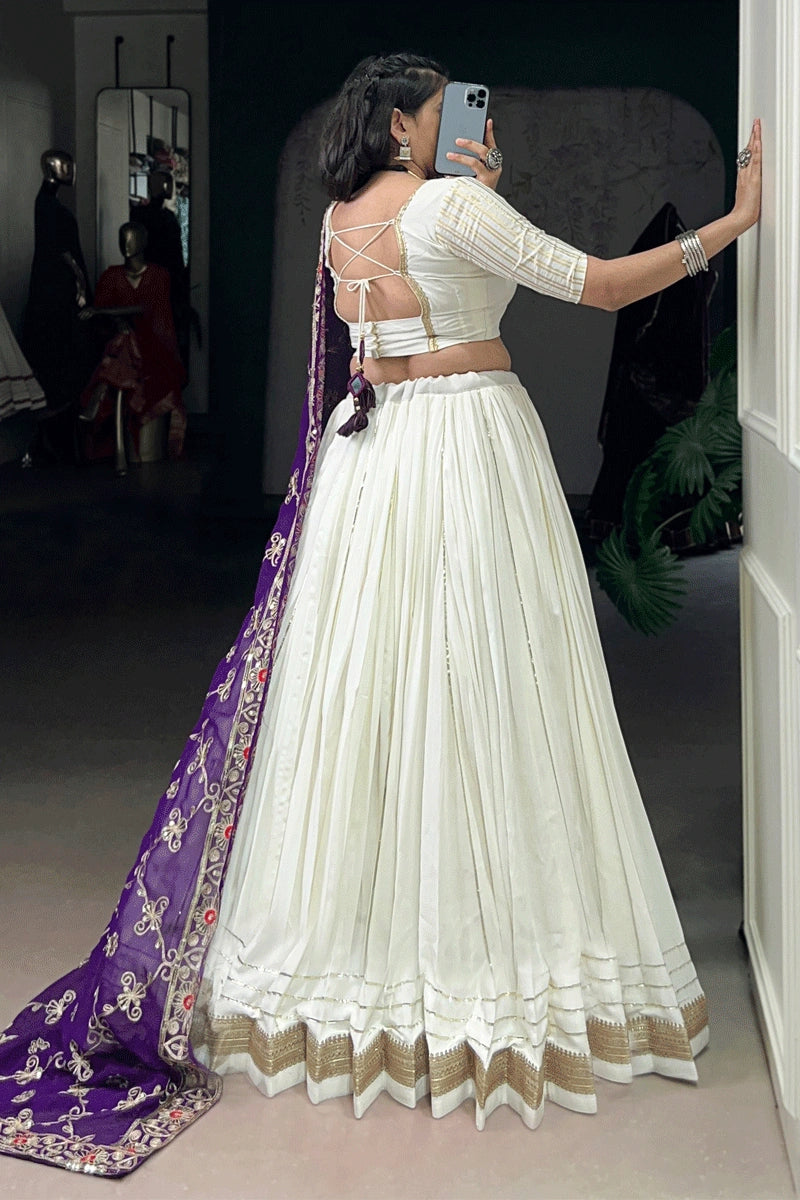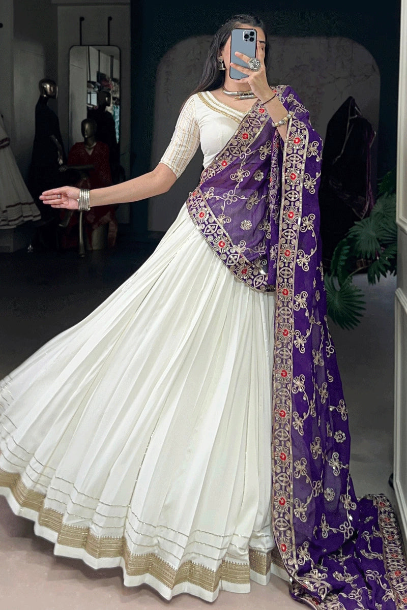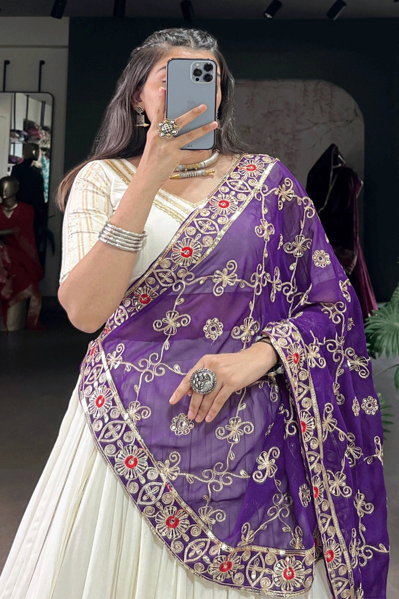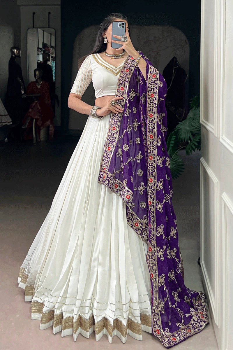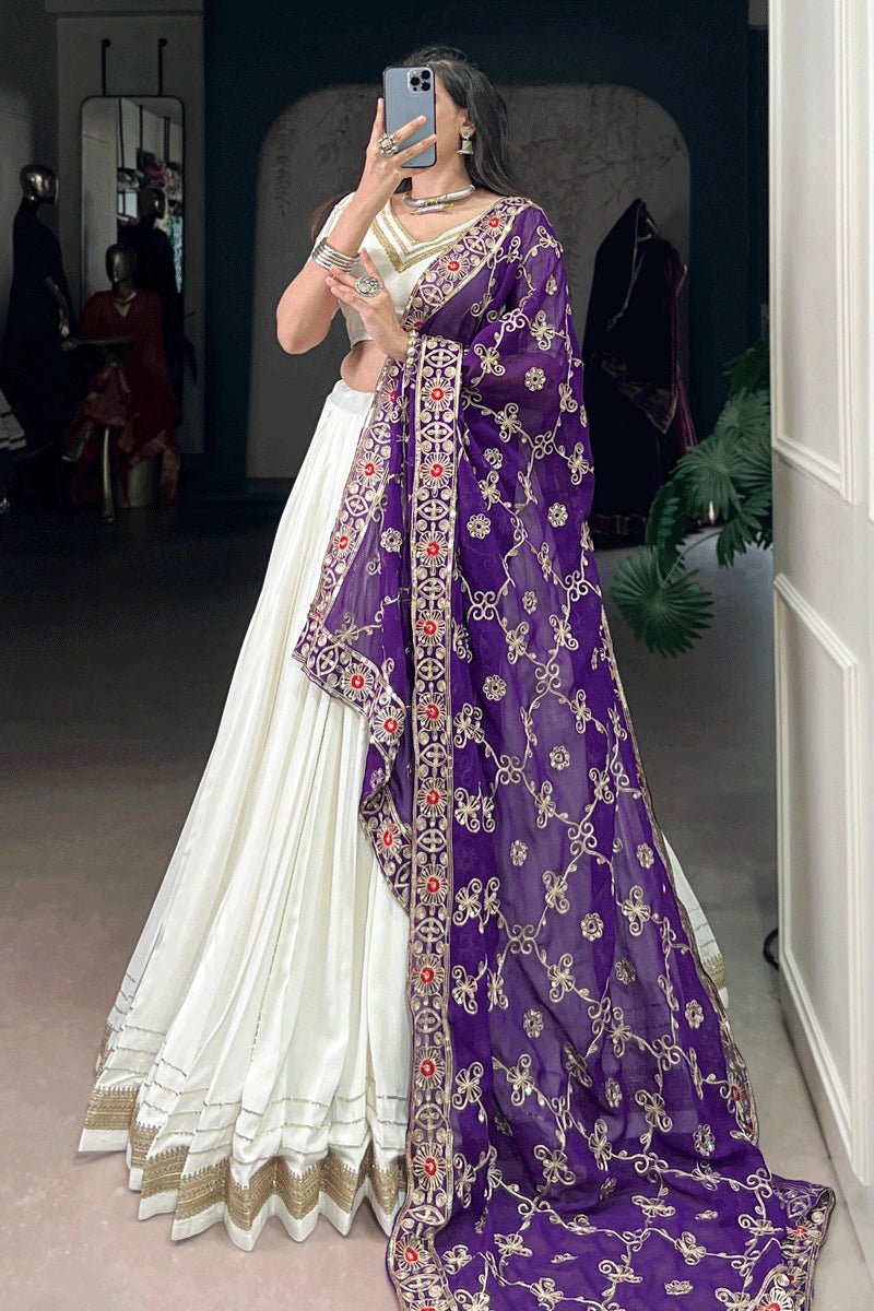 Traditional White Lehenga Choli with Embroidery Work Dupatta For Women
