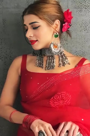 Saree Details:- Fabric: Soft Organza Silk Red Saree