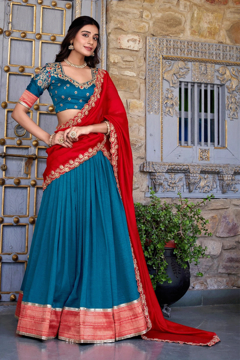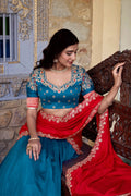 Wedding Special South Indian Style Teal Lehenga Choli