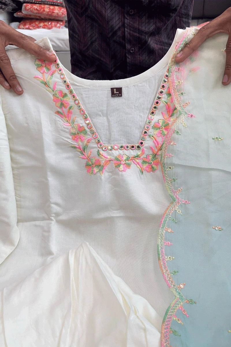 Work: Multicoloured Embroidery on Neck & Daman Border