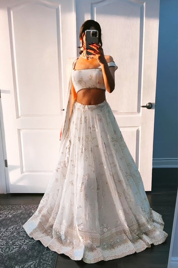 Get Latest Wedding Special White Crop Top Lehenga With Sequence And Embroidery Work For Girls By Anaya Designer Studio