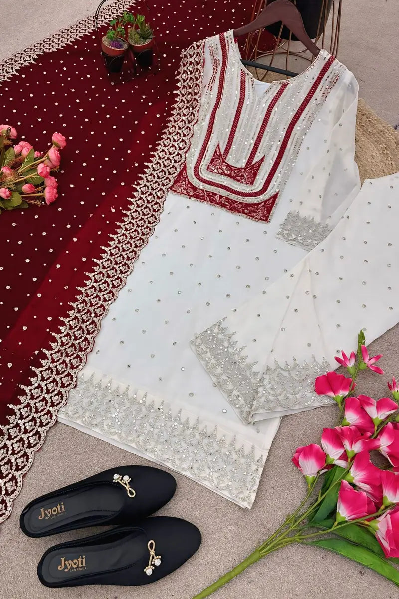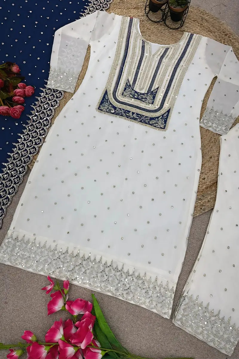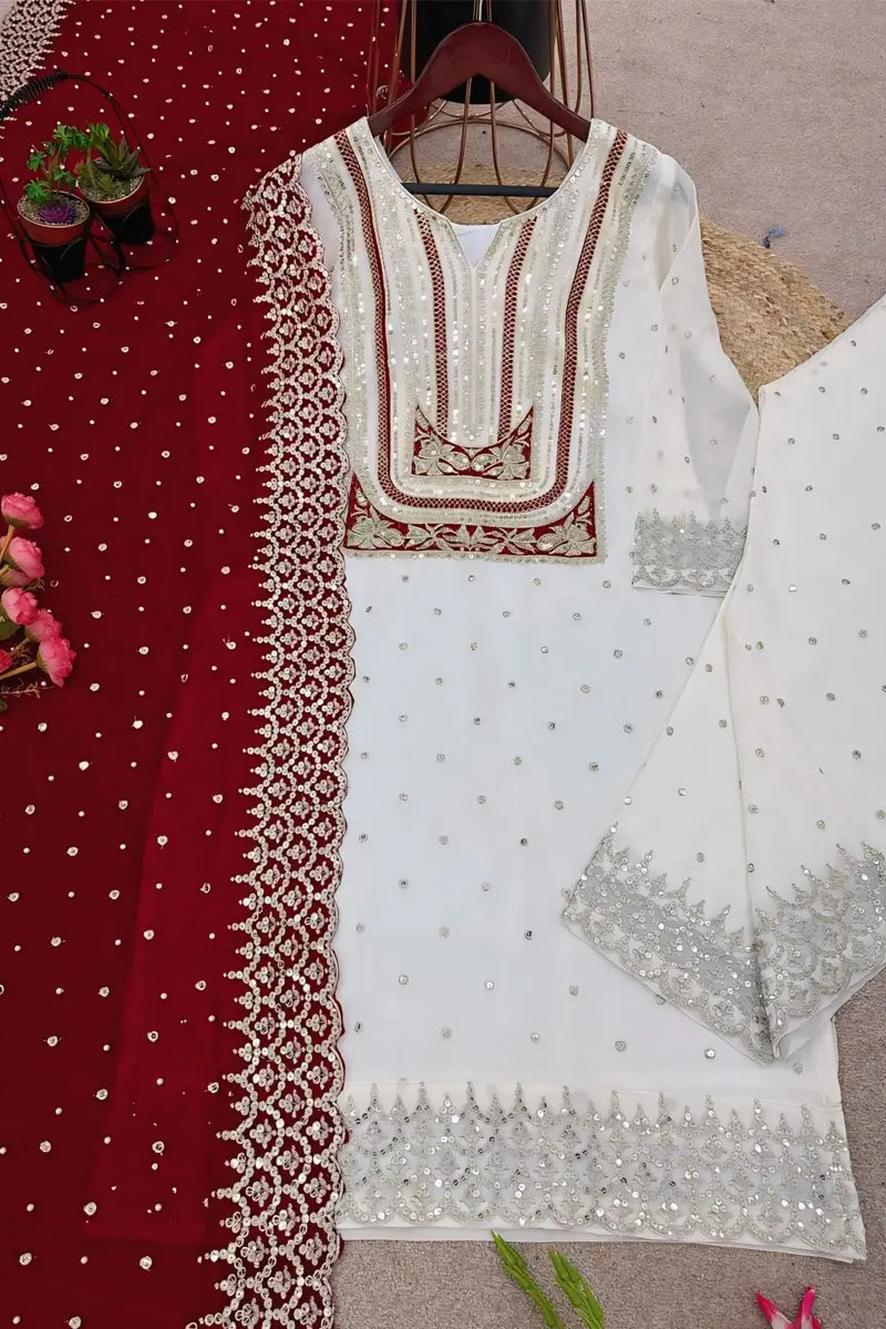 Stunning White Dress with Heavy Embellished Dupatta: Perfect Attire for Eid Festival Celebrations