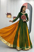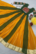 New Navratri Collection Yellow Lehenga Choli With Green Long Shrug For Girls