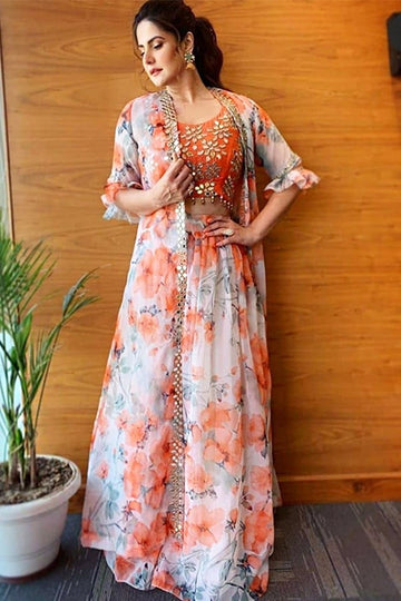 Zareen khan orange dress Lehenga 2021